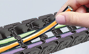 | CONDUFLEX Uzavřený kabelový nosič. Na pohled atraktivní díky kvalitní oceli a skleněným vláknům zpevněného polyamidového rámu.