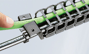 | Zařízení pro odlehčení tahu Odlehčení tahu kabelů záleží na typů kabelů, délce kabelového nosiče a montážní pozici. |