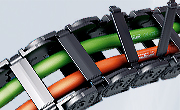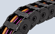 | CONDUFLEX Uzavřený kabelový nosič. Na pohled atraktivní díky kvalitní oceli a skleněným vláknům zpevněného polyamidového rámu.