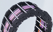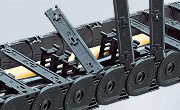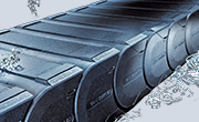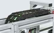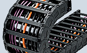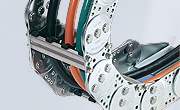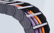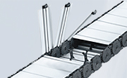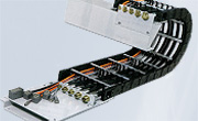 - Zakryté kabelové a hadicové nosiče s plastovými nebo hliníkovými krycími systémy a kompletně uzavřenými nosiči trubek.