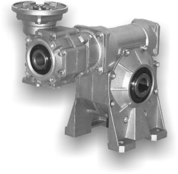 Šneková převodovka s válcovým předstupněm. Kombinovaná šneková převodovka s dvojitým šnekovým hřídelem nabízí převody vysoké rychlosti.